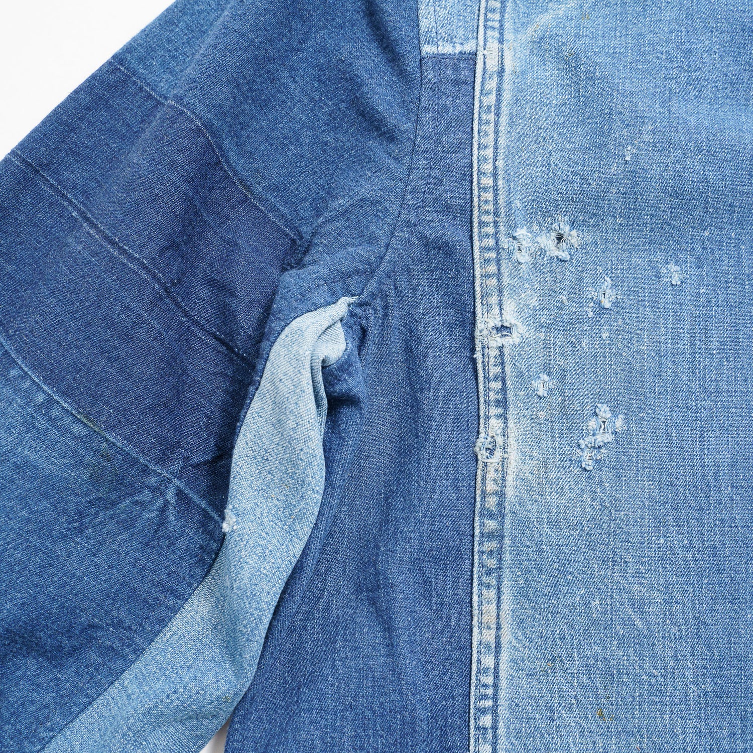“解く”ことによって現れる、それまで隠れていた生地と経年変化した生地のコントラスト。