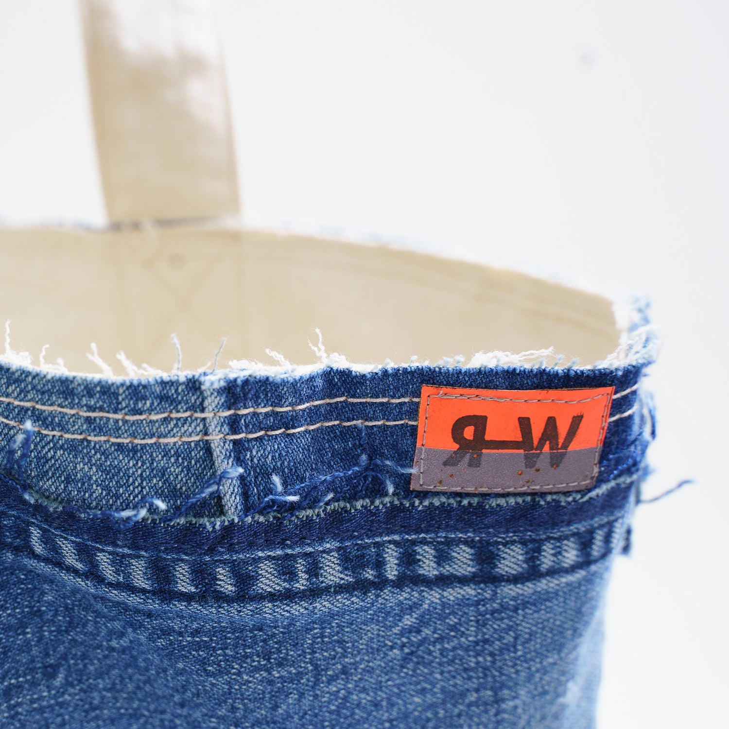 No.1のマテリアルは、瀬戸内の造船所で約1年間着用されたデニム地のワークウエアで、デニム生地は世界に誇るジャパンクオリティ「カイハラデニム」で開発されたオリジナルです。溶接、塗装など、造船所で働く方の仕事が写しとられた生地は、一つとして同じものはありません。それを丁寧にほどいて新たな商品として作製しています。唯一無二の味わい深い素材です。退色や変色、シミ汚れ、糸切れや穴空きは働きながら自然に生みだされたものです。それらの魅力を伝えるためあえてその痕跡を残し使用しています。